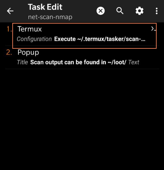 What's pretty cool with tasker is that we can use the output of the previous command and just do a quick pop-up to display all of the information on the screen when scanning is done. Note that everything on tasker is GUI based so it is a bit of a hassle but can be done quickly because of it's amazing import/export functionality open this page on your phone and click the following link After going through the prompt on your phone tasker should look like this: