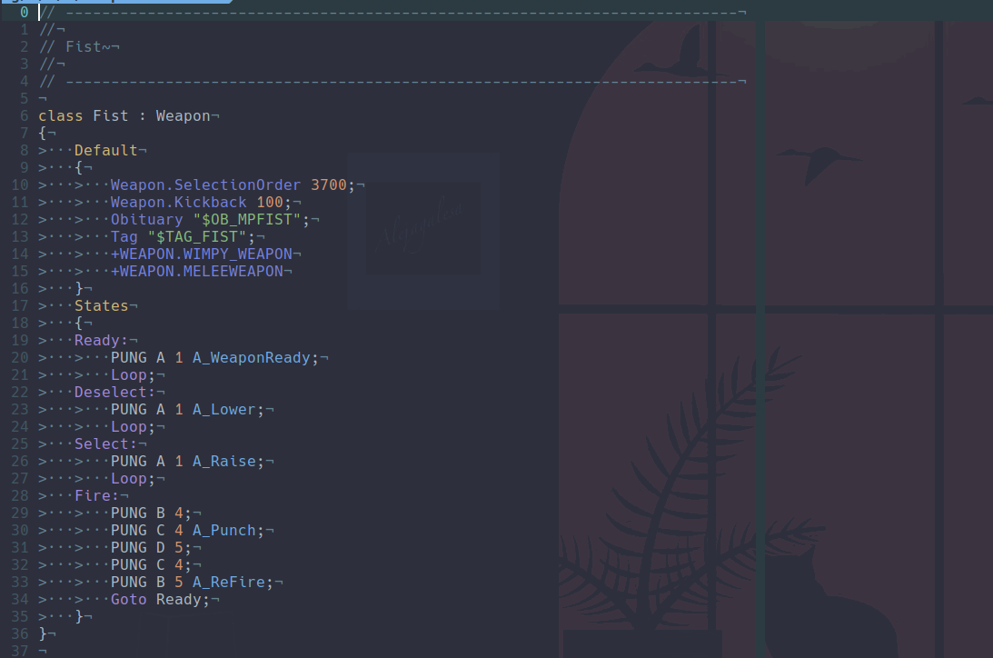 So inside of gzdoom there is a gzdoom.pk3 archive where a lot of the weapons are just defined from that I can at least understand how the default fists work. A pk3 file is basically a doom mod pk3's are just .zip file you just have to rename pk3 to zip and vice versa ^^. A lot of the source is also text files which allows for great reverse engineering capabilities since everything is just there for you to read. Now trying to replace the fist using the zscript builtin inheritance and replace keyword was not really working for me and I just got frustrated after doing it for two days so I went on the gzdoom discord... The fists where not loading in game I spammed console.printf everywhere to see what was wrong but nothing was loading why...