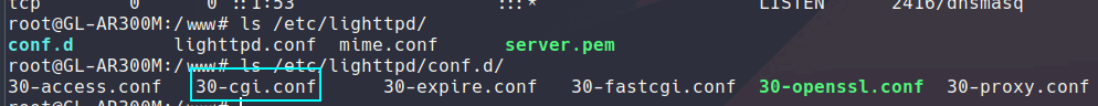 Highlighted is a cgi.conf file which is what I thought I should focus on cgi-bin is great to create vulnerable apps since it basically allows a web browser to run bash scripts. With this I am now able to modify the config and allow shell scripts: