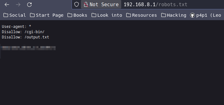 On web engagements the first step should be robots.txt so after navigating there I can see a cool disallow entry... Even though output.txt is not accessible :c