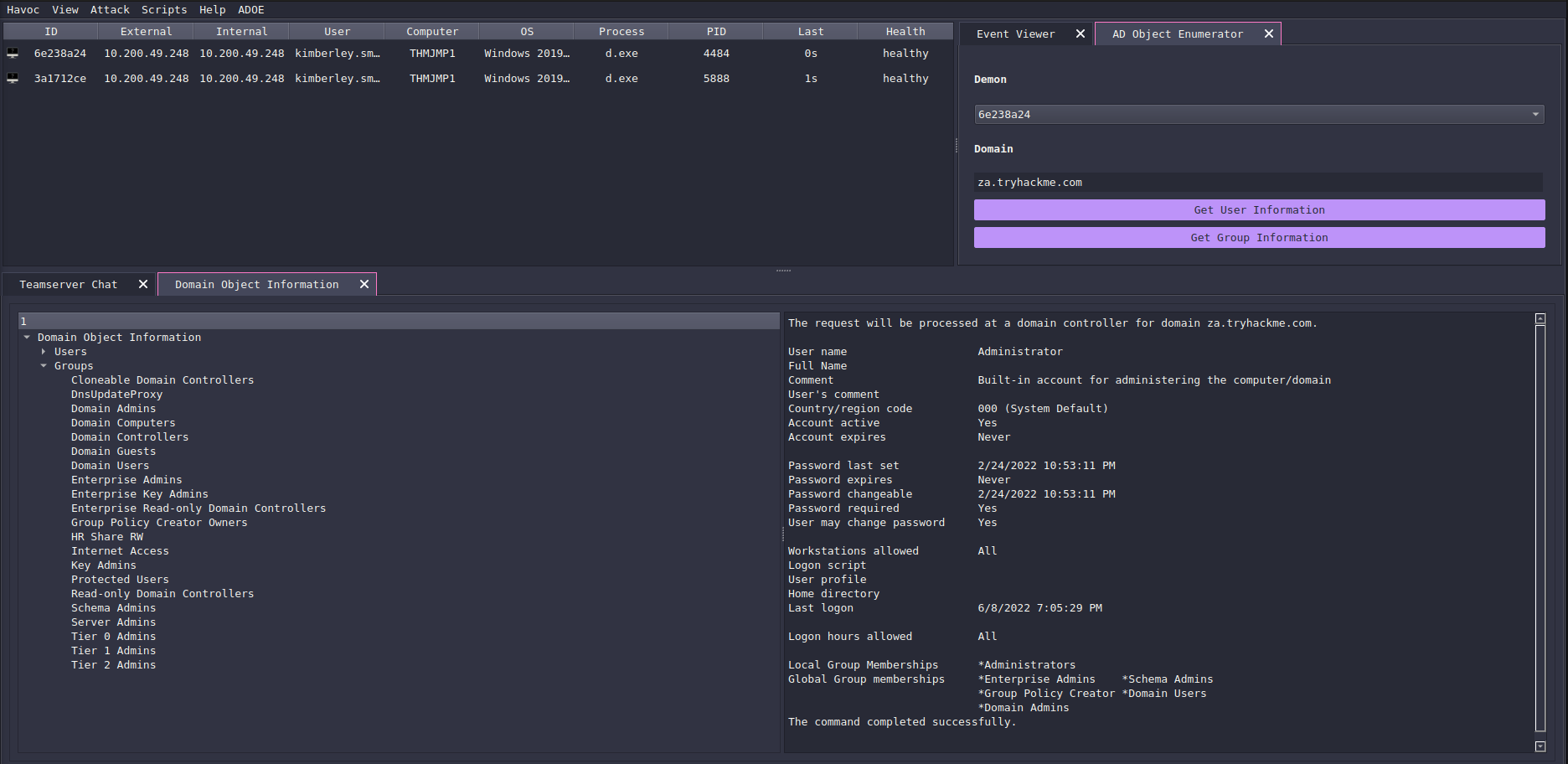 This extension is built by Jakob which allows you to enumerate active directory through an agent from the Havoc UI and allows you to view information on users and groups!