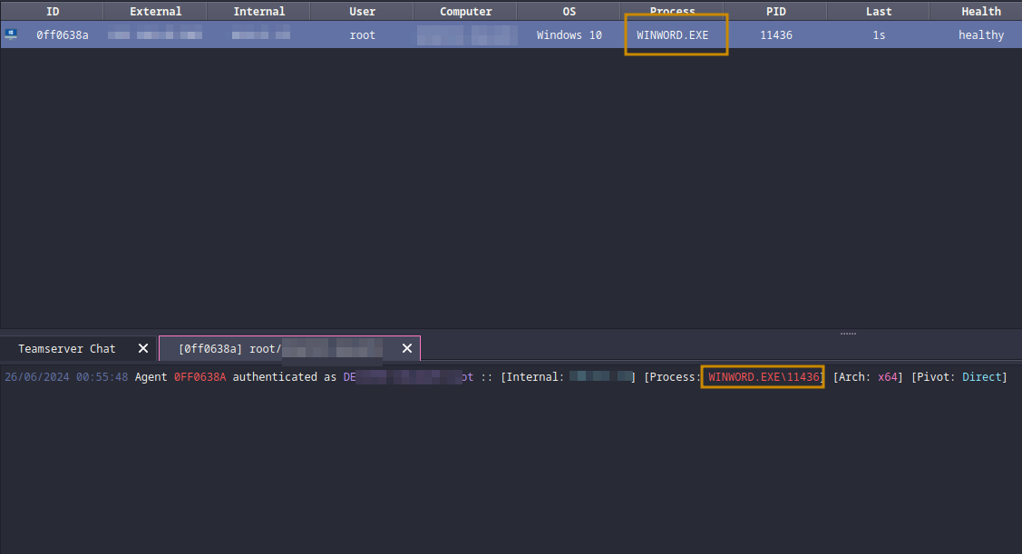 With the payload ready to be sent out we just have to wait for the victim to run the macro and a havoc shell should now magically appear on your interface. First here is the output of msfconsole: