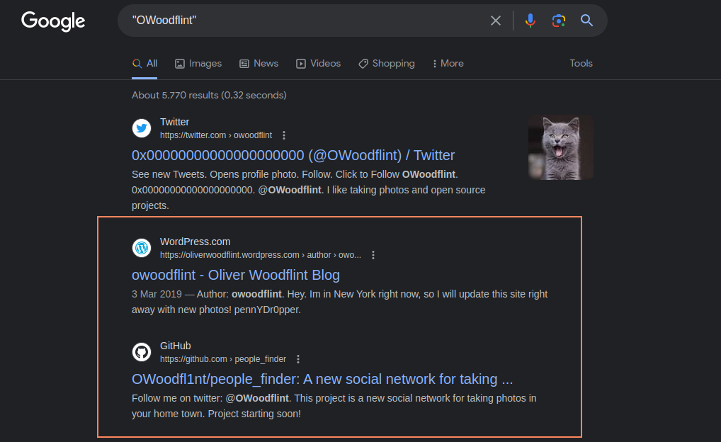 After this rabbit hole we can now go back to our search and see what else we can find. To change we can search on google to see what can be found there for a change: