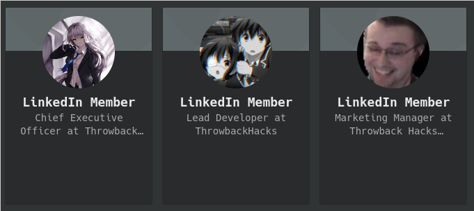 For this computer there was no fancy tools to use it was manly some OSINT that had to be done using linked in and github. Looking on linkedin, I found a Throwback Hacks company that has 3 employees
