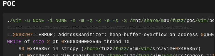 Through my research I also had a look at how CVE's where run on vim and discovered that most of them are run with specific arguments. For example (CVE-2022-1942):