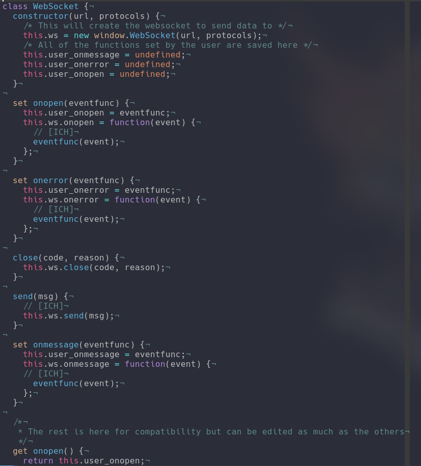 Seeing this did confuse me a lot I was dumb founded that WebSocket was just a function when you would use the dot operator to call send() and such. Which was very confusing to me. I looked more online and then...