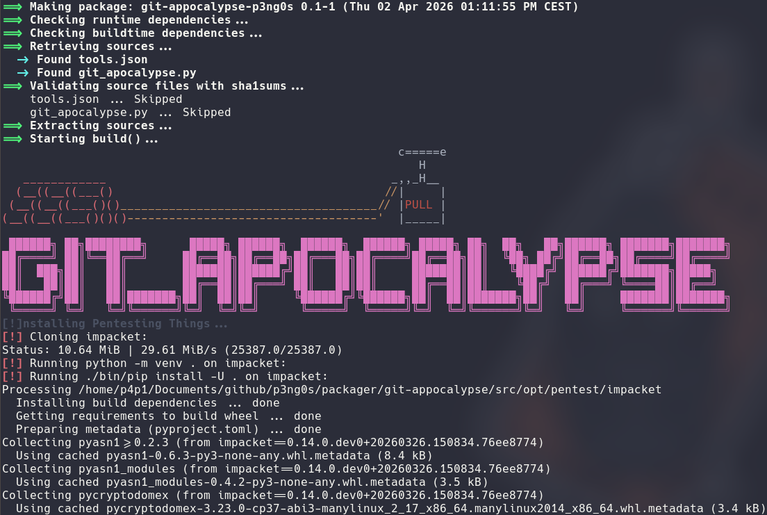 To avoid this dependency hell I rewrote git-apocalypse, the big bash script previously mentioned, to include everything. Make it dumb and simple for me to maintain