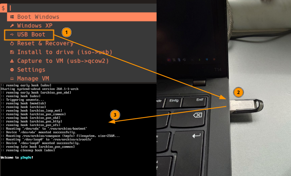 I then decided to rebuild the whole .iso and push the idea of a live system only to it's fullest! So implementing the LOOT system wasn't that hard I actually had to ditch flashing the .iso to a USB stick with balena etcher and start using a custom flasher that would partition the drive correctly for me.